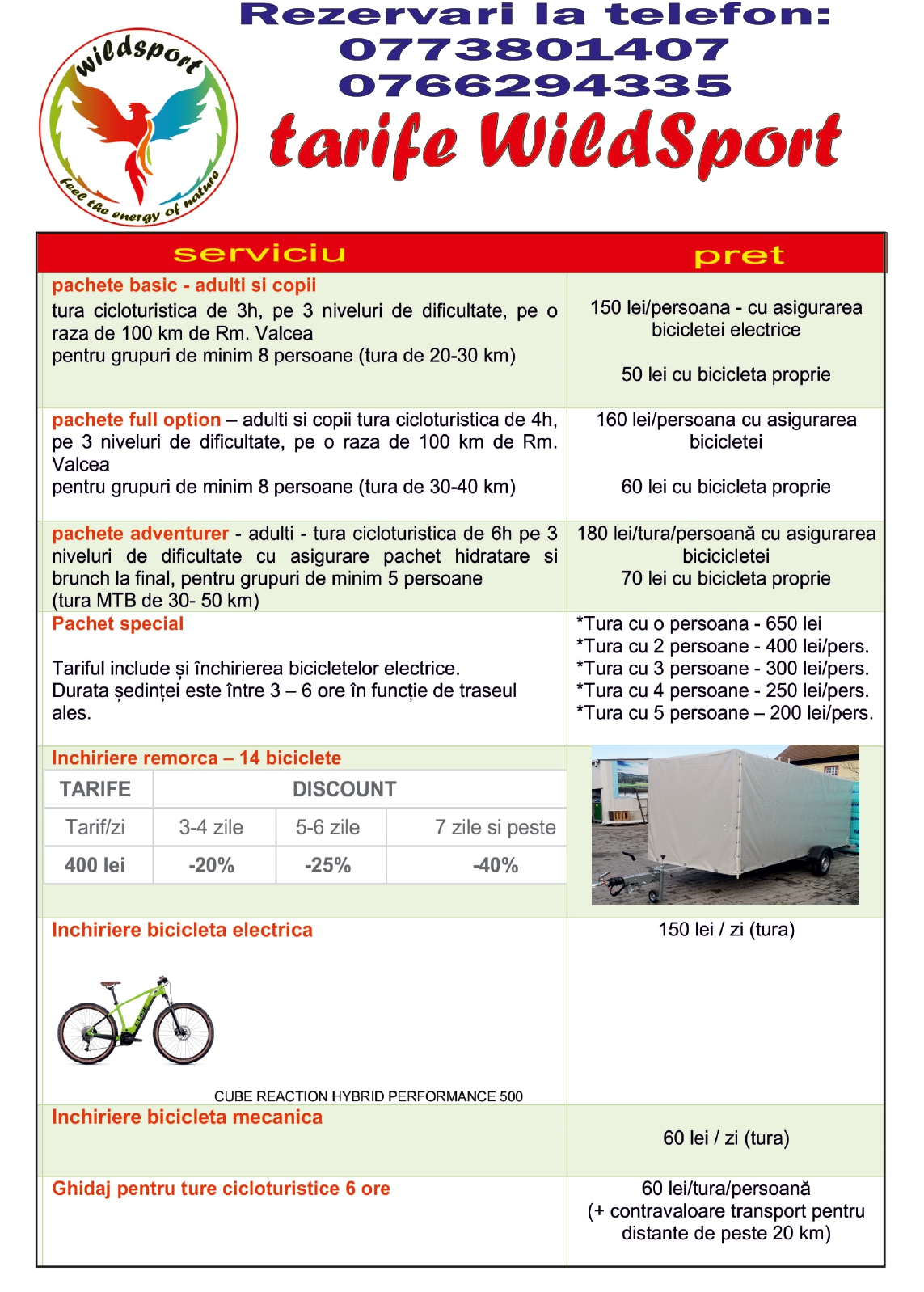 Iubim muntele, pădurea și plimbările cu bicicleta și vrem să împărtășim cu tine pasiunea noastră pentru mountain bike. Ne asigurăm că te vei simții în siguranță pe parcursul traseelor pe bicicleta, ghidate de echipa WildSport, în timp ce tu te bucuri de peisaje și îți încarci sufletul cu energia naturii.